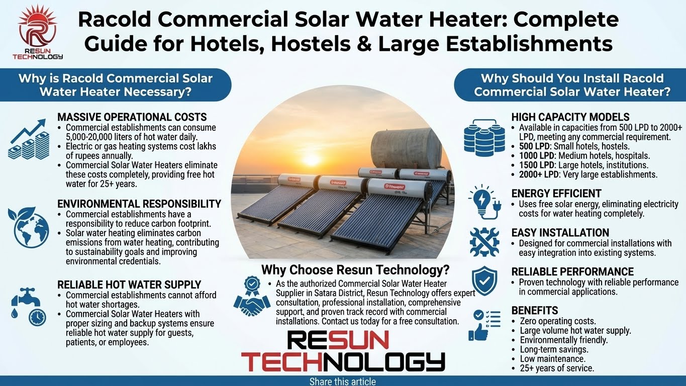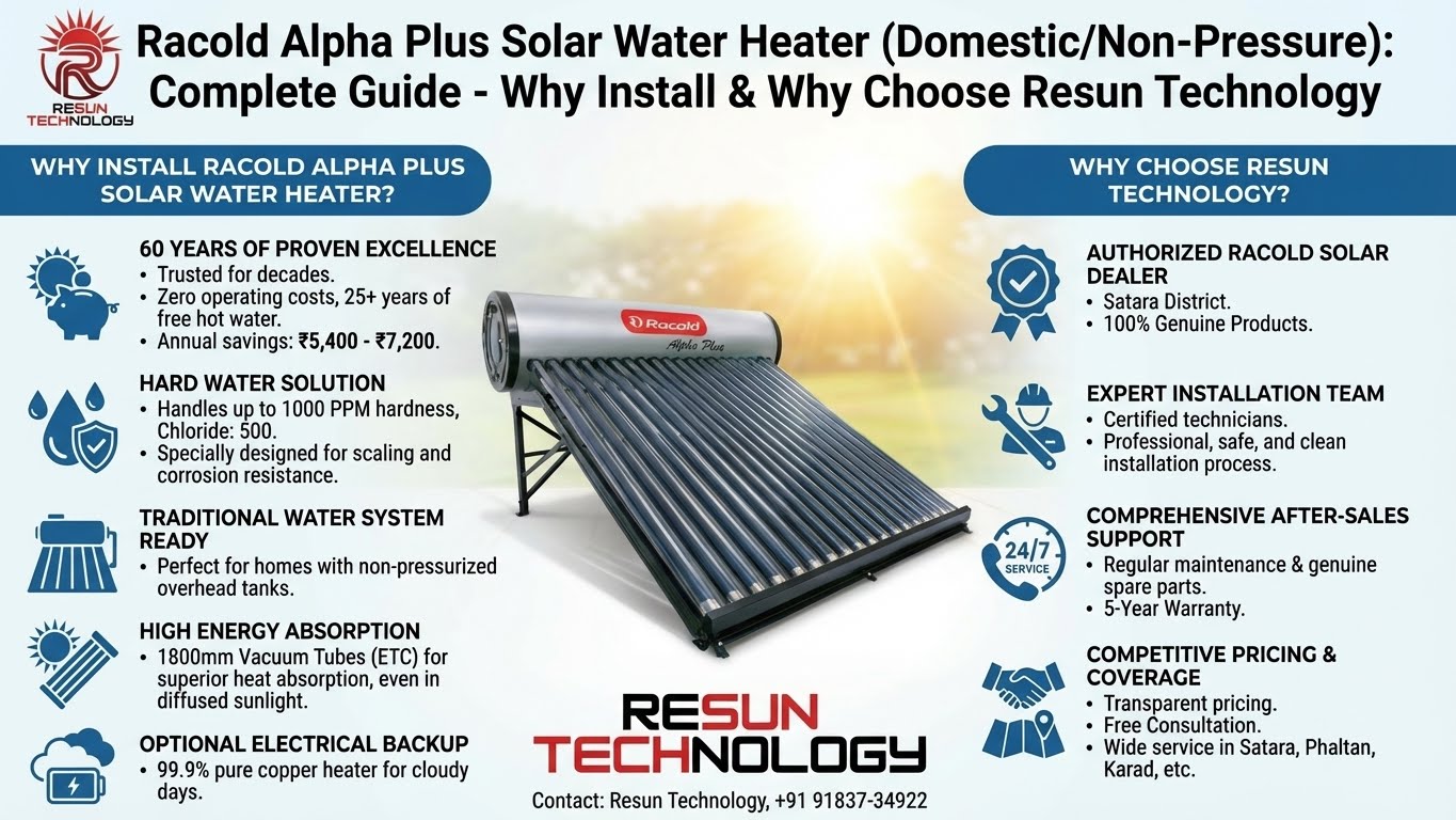 Discover why Racold Domestic Heat Pump (Split) is essential for modern homes. Learn about 70% energy savings, Titanium Plus Technology, installation benefits, and why Resun Technology is your trusted partner in Satara District.